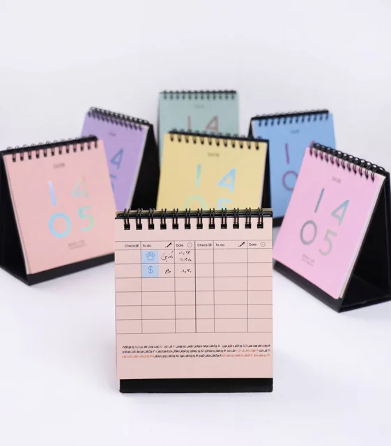 تقویم رومیزی ۱۴۰۵ موندریان با طراحی مدرن و جذاب، فضای کار شما را زیبا و منظم میکند. این تقویم شامل تاریخهای دقیق، مناسبتها و روزهای تعطیل است و به شما کمک میکند برنامهریزی روزانه را به شکلی کارآمد و آسان انجام دهید. مناسب برای میز کار و دفتر.