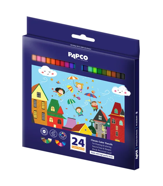 مداد رنگی کلاسیک مقوایی 24 رنگ پاپکو طرح چتر