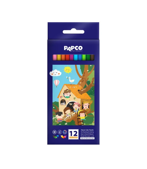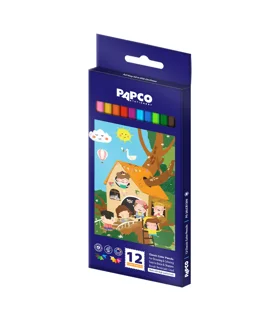 مداد رنگی کلاسیک مقوایی 12 رنگ پاپکو طرح خانه درختی